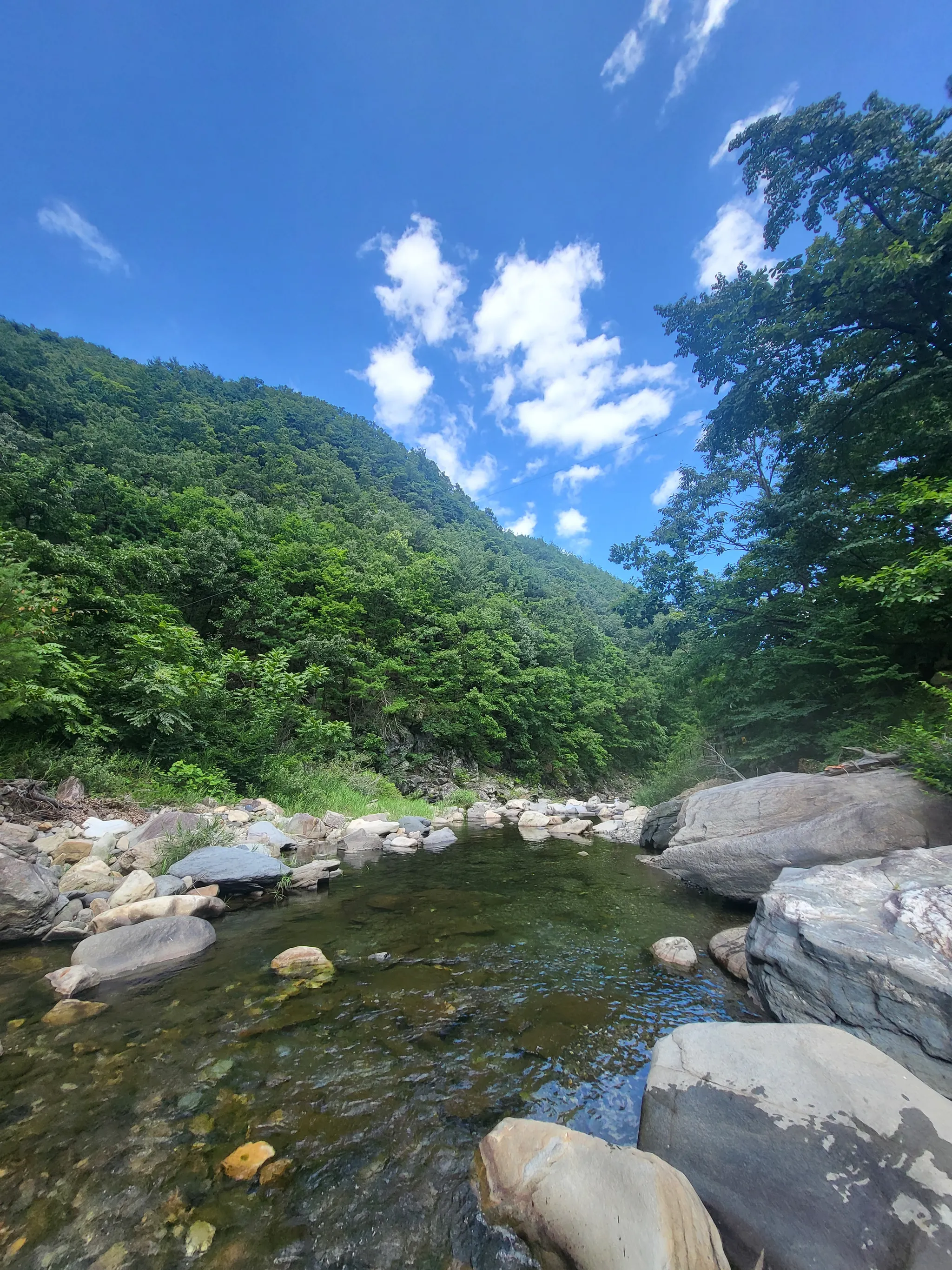 마지막 날 아침이 밝았다. 아침부터 짐을 싸느라 바빠서 밥을 못 먹었다. 나는 전날 자기 전에 짐을 대충 싸 두어서 그렇게 많은 시간이 필요하지 않았다. 원래는 밥을 먹고 집으로 돌아가려고 했지만, 아빠가 근처에 좋은 계곡을 봐 두었다며 발만 담그고 가자고 했다. 엄마는 발만 담그는 것은 불가능하다고 경고했지만 우리는 결국 계곡을 향했다. 계곡물은 맑고 깨끗했다. 산에서 내려오는 물이 차가워서 더위가 모두 사라지는 느낌이었다. 그리고 큰 나무가 있어 뜨거운 햇빛을 가려주었다. 엄마의 예상대로 우리는 차 안에서 옷을 갈아입기 시작했다. 계획이 틀어졌지만, 뜻밖의 즐거움을 느낄 수 있었다. 계곡에서 물고기를 잡고 아빠가 발견한 3단 폭포에 누워 마지막 휴가를 즐겼다. 더위가 싹 날아갔다. 우리는 저녁까지 놀다가 밤이 돼서야 집에 도착했다. 엘리베이터를 타고 올라오는 내내 우리는 말했다.